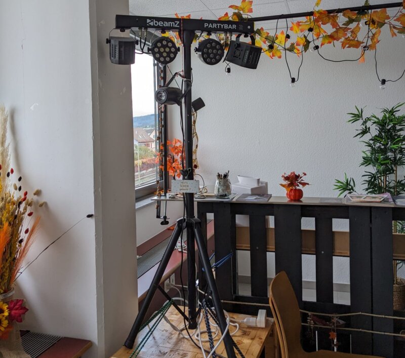 - Beamer, Soundbox, Lichtanlage & WLAN