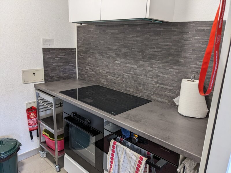 - Bar, Kaffeemaschine, Backofen, Herd, Mikrowelle & Geschirr
