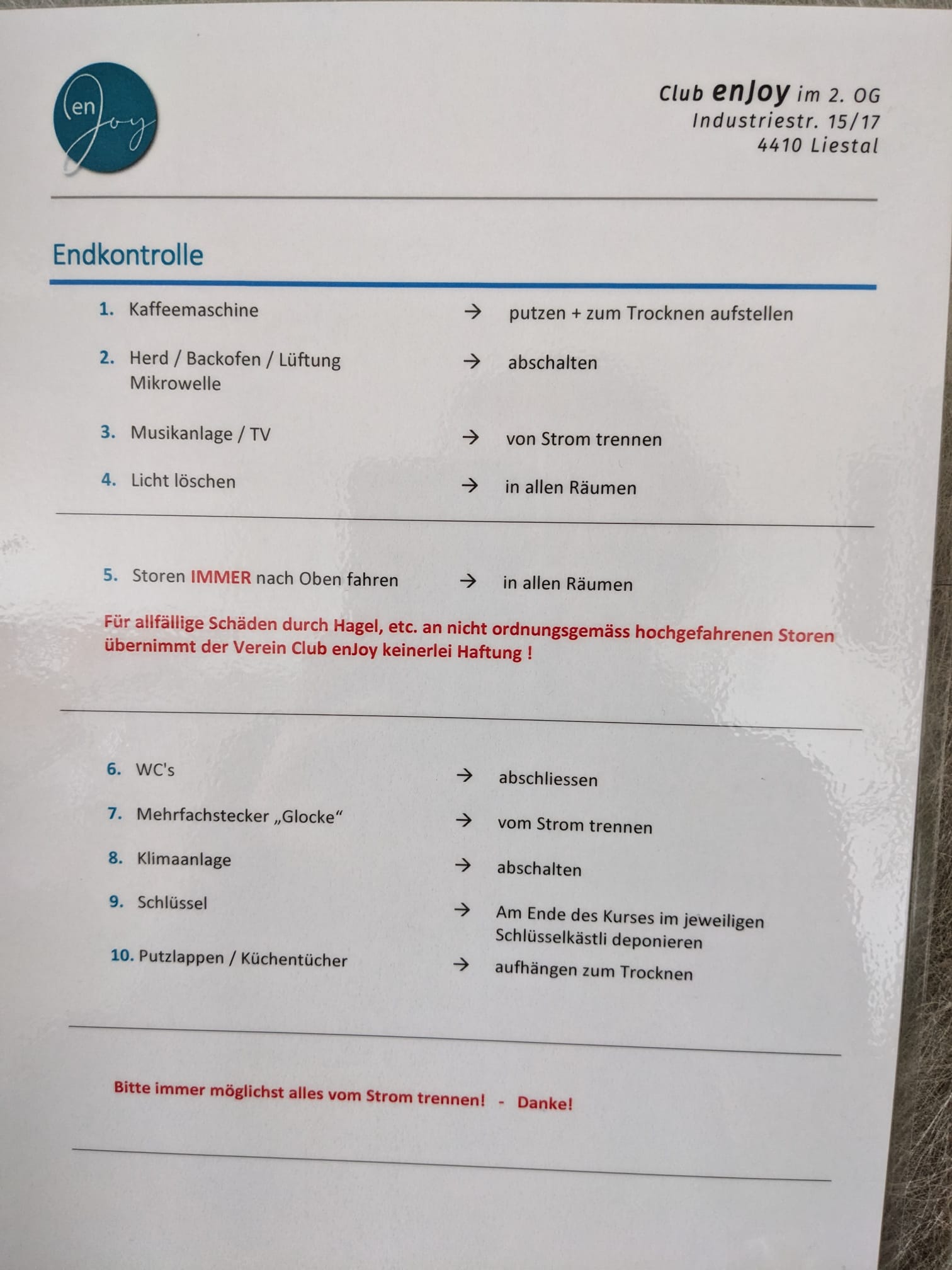 Club enJoy – Vermietung